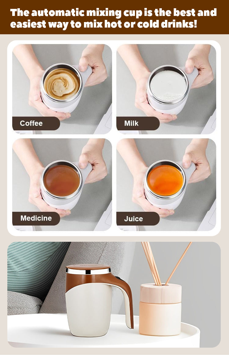 The automatic mixing cup is the best and easiest way to mix hot or cold drinks! It is easy to use and suitable for anyone who wants to have such an automatic hot cup in autumn and winter.