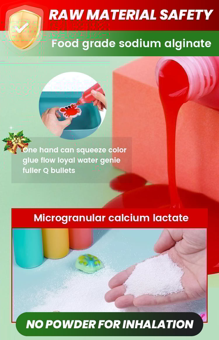 Selected natural food grade sodium alginate, non-toxic and non-injuring hands.
